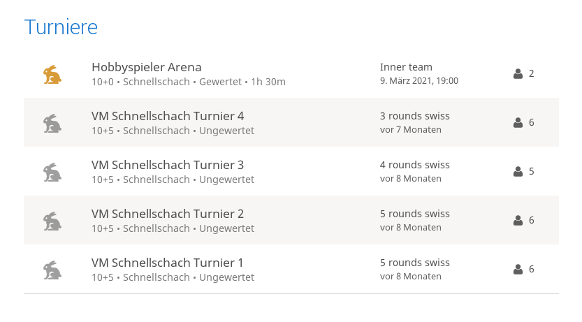 Auf der rechten Seite von "Schach in Leer" finden sie die Turniere: