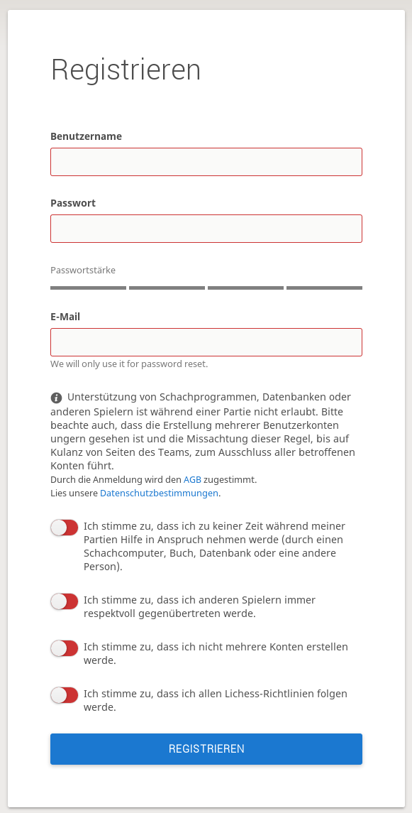 Bei Lichess anmelden.